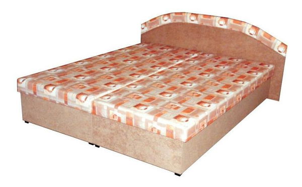 Manželská postel hnědé barvy s půlobloukovým čelem a strakatým vzorem spací části je vhodná do každé ložnice. Čalounění je vyrobeno z kvalitní látky mikrofáze / polyester, matrace je z PUR pěny. Do prostorného úložného prostoru se dostanete po odklopení spací část z boku. Plocha lůžka je 160x195 cm a výška spaní 42 cm.