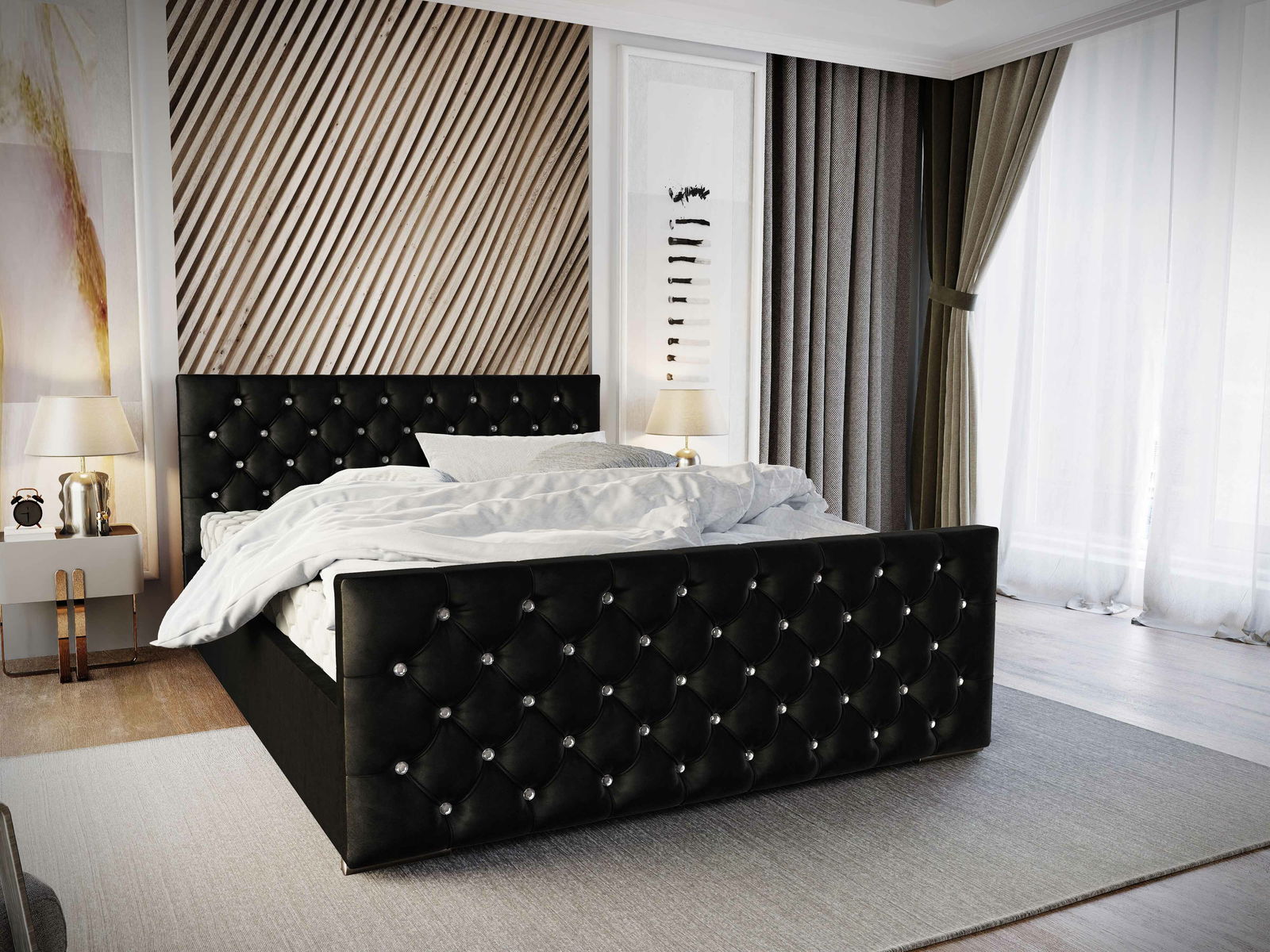 Manželská postel 160 cm Quintin (černá) (s roštem a úložným prostorem)