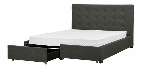 Tato výjimečná postel má elegantní design a nabízí dokonalé pohodlí. Hrubé vyztužené čelo postele s ozdobným prošíváním s knoflíčky se postará o jedinečný pocit luxusu. Čalounění z polyesterové látky se strukturou lnu v elegantním odstínu je odolné vůči opotřebení a snadno se udržuje. Rám postele je vyroben z dýhované překližky a jeho součástí jsou dvě prostorné zásuvky na kolečkách, které nabízejí dostatek úložného prostoru pro odkládání přikrývek a ložního prádla.
