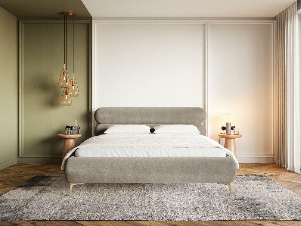 Manželská postel 160 cm Rirri 160 (s roštem) (s úl. prostorem) (béžovošedá + zlatá)