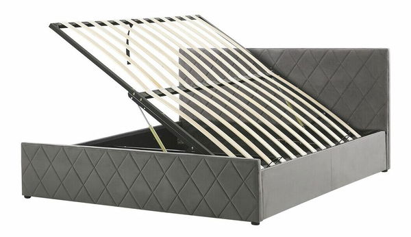 Zařiďte si ložnici nádherným a funkčním kusem nábytku. Tato postel je čalouněna luxusním sametem s ozdobným prošíváním, díky kterému vypadá elegantně, ale ne příliš okázale, takže je vhodná do ložnic zařízených v různých stylech. Součástí rámu postele je i lamelový rošt, který vaší matraci poskytne dokonalou oporu. Lamelový rošt je vybaven plynovými vzpěrami a lze jej namontovat tak, aby se otevíral na pravou nebo na levou stranu. Hluboký úložný prostor se jistě osvědčí v místnostech s malým prostorem, protože se do něj vejde ložní prádlo, polštáře, přikrývky, ale také oblečení.