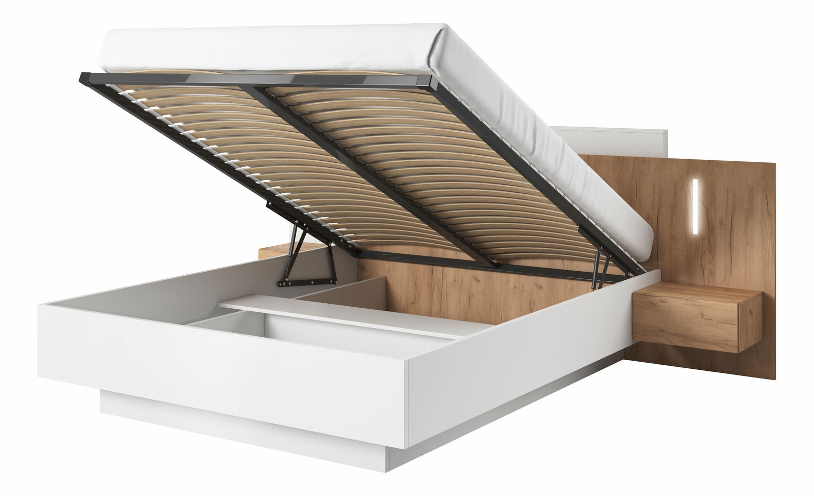 Manželská postel 160 cm s nočními stolky Three (s úložným prostorem) (s osvětlením) (dub craft zlatý + bílá)