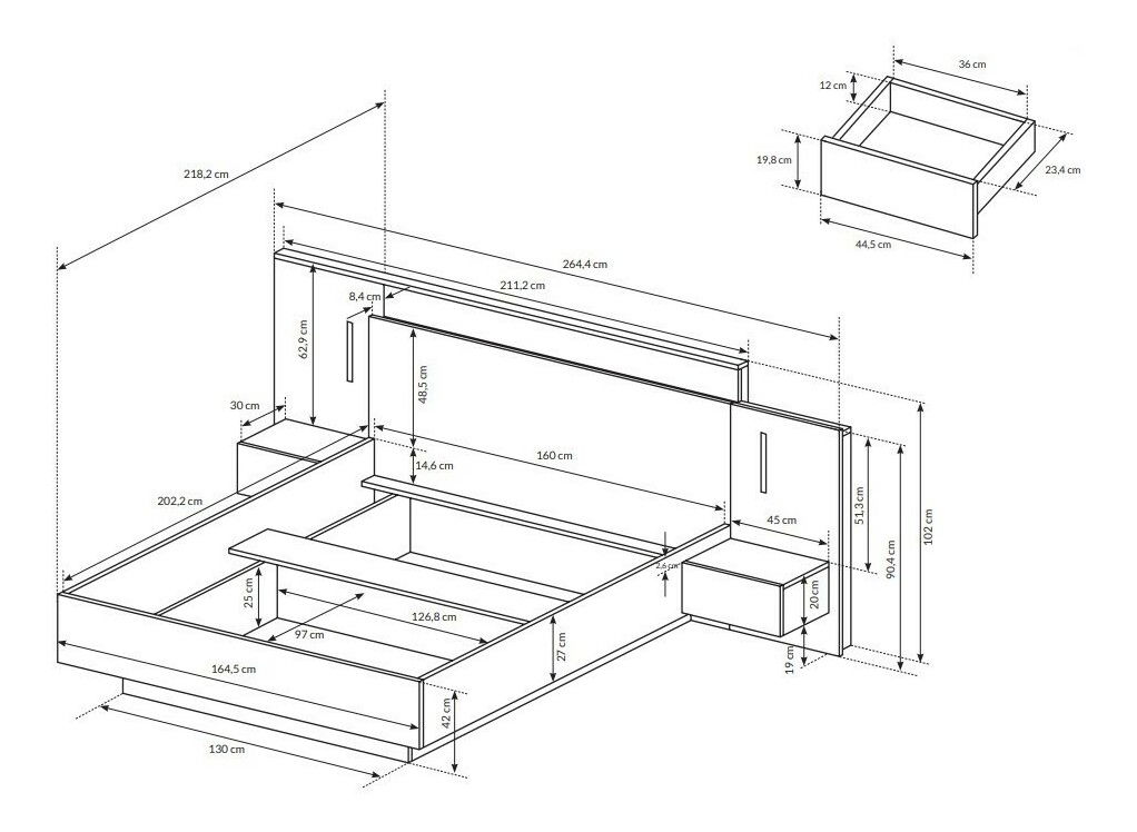 ZobrazitManželská postel 160 cm s nočními stolky je praktický nábytek pro vaši ložnici. Tato postel je vyrobena z kvalitního materiálu - Dub Craft Zlatý + Bílá, což jí dodává elegantní vzhled. S výškou 101.6 cm, šířkou 218.2 cm a hloubkou 261.2 cm nabízí dostatek prostoru pro vás a vašeho partnera. Postel je vybavena úložným prostorem, kde můžete uložit své věci a udržet pokoj uklizený. Navíc, noční stolky jsou součástí s osvětlením, což vám poskytne pohodlný přístup k osvětlení a snadnému přístupu k drobným předmětům. Tato manželská postel se všemi těmito funkcemi je ideální volba pro moderní a praktickou ložnici.