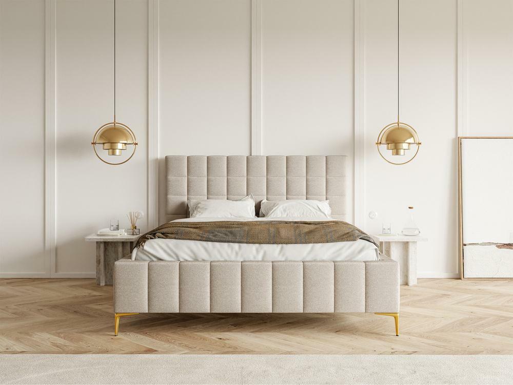Manželská postel 160 cm Sheldona 160 (s roštem) (s úl. prostorem) (béžovošedá + zlatá)