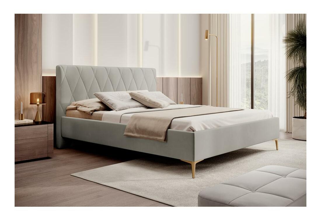 ZobrazitHledáte stylovou a praktickou postel do vaší ložnice? Vyberte si postel z kolekce a vychutnejte si módní interiér jako ze snu je tvar v moderní podobě, který se bude skvěle hodit do každého módního interiéru útulná atmosféra ve vaší ložnici. Vysoké čelo postele je zdobeno geometrickým prošíváním, které efektně přitáhne pohled a potěší všechny členy domácnosti a hosty. Základem celého jsou štíhlé kvé nohy zlaté barvy. Produkt. detaily: plocha na spaní: 160x200 cm geometrické prošívání z postele činí skutečnou ozdobou každého interiéru, postel je čalouněna látkou Velluto 01 v krémové barvě, Velluto je hustý samet s jemným leskem. Jemné a sametové na dotek. Vysoká odolnost proti oděru, tření a žmolkování. Nevybledne vlivem světla V nabídce i jiné barvy tohoto modelu.