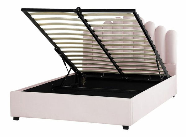 Vneste do své ložnice špetku luxusu s touto nádhernou postelí. Dřevěný rám je celý pokryt hedvábně jemným čalouněním z polyesterového sametu v pastelovém odstínu růžové. Postel se může pochlubit krásným čelem navrženým tak, aby připomínalo tvar mušle, díky kterému působí opravdu elegantně. Nabízí velký úložný prostor skrytý pod pevným lamelovým roštem, který poskytne dokonalou oporu jakékoli matraci. Tato elegantní a stylová postel se stane skutečnou ozdobou každé moderní ložnice.