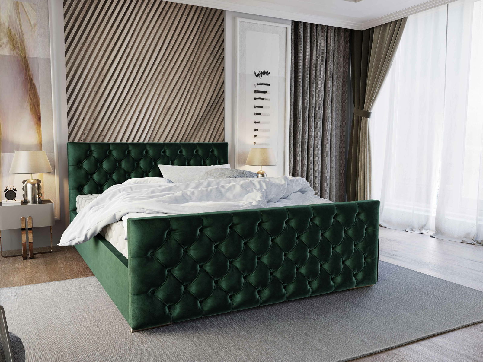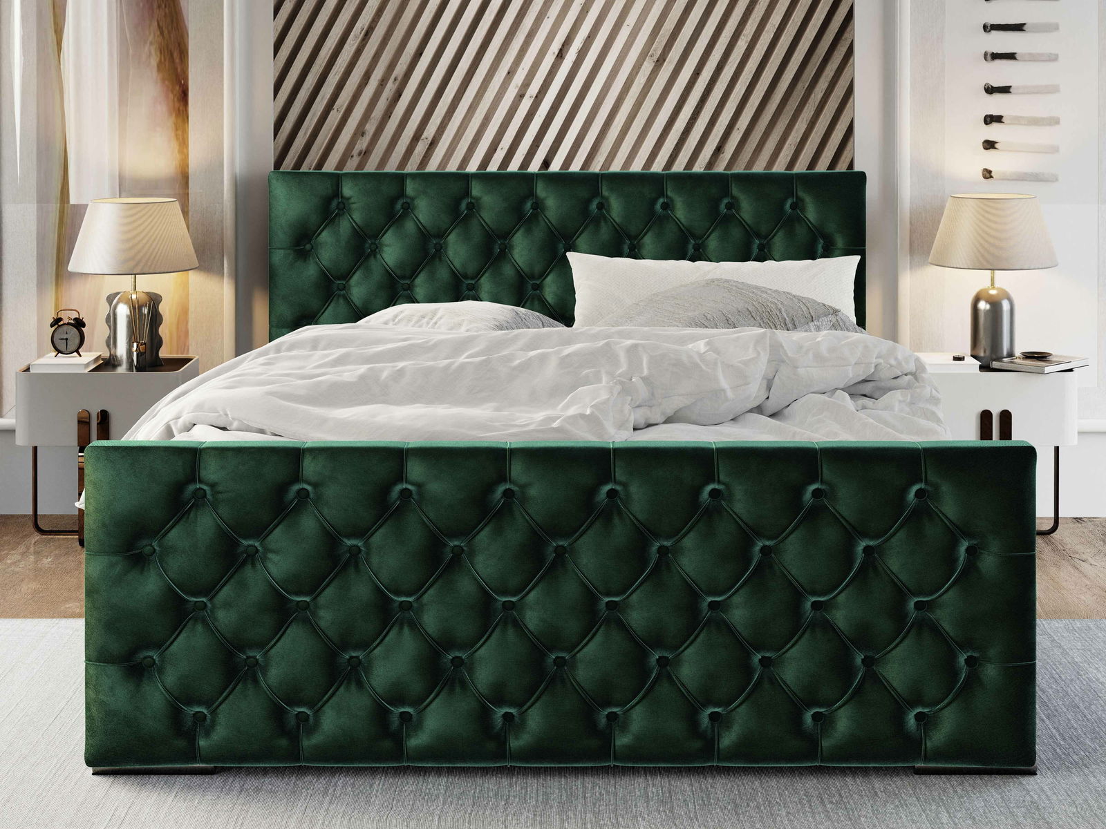 Manželská postel 160 cm Velva (tmavě zelená) (s roštem a úložným prostorem)