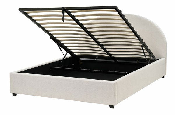 Zaoblené tvary a látkové čalounění s bohatou strukturou vytvářejí design, který je ideální do ložnic zařízených v retro stylu. Postel je čalouněna látkou ve světlém odstínu béžové barvy, která je příjemná na dotek, snadno se udržuje a je trvanlivá. Díky zaoblenému čalouněnému čelu příjemně zútulní vaši ložnici. Postel má také úložný prostor, který je vhodný pro odkládání polštářů nebo ložních přikrývek.
