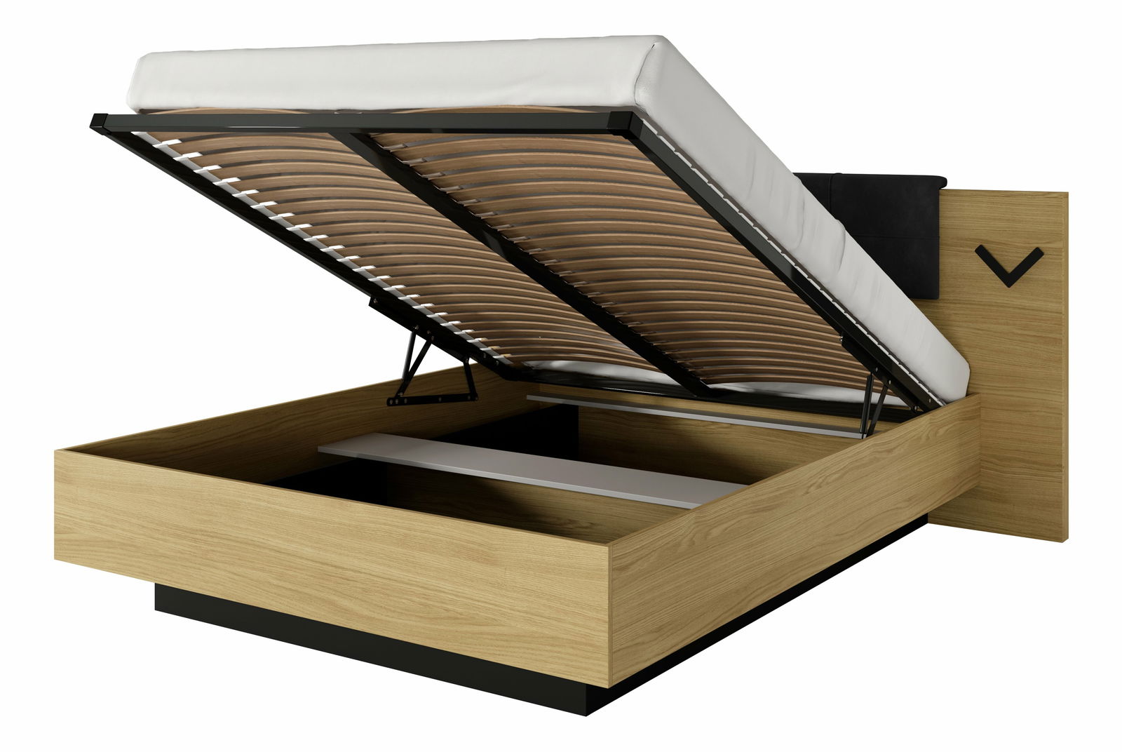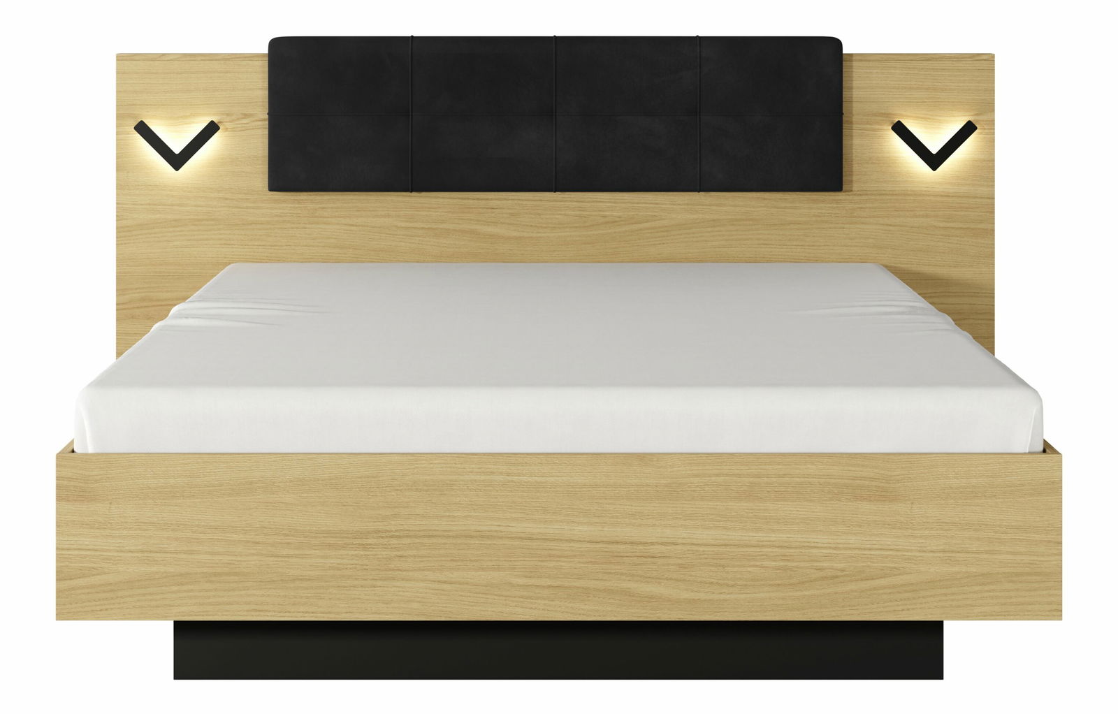 Manželská postel 160 cm Versaccio (s úložným prostorem) (s osvětlením) (bez matrace a roštu) (dub scandi + černá)