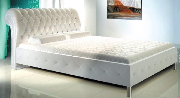 Luxusní manželská postel udělá z Vaší ložnice moderní prostor. Je čalouněná kvalitní textilní kůží bílé barvy. Na čele a po bocích je zdobena stříbrnými knoflíky. Plocha lůžka je 160 x 200 cm. Je dodávána bez roštu a matrace. Ty si můžete vybrat a přiobjednat z nabídky našeho internetového obchodu.