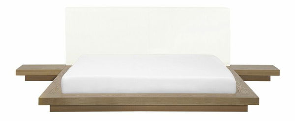 Tato elegantní a minimalistická postel na nízké platformě je inspirována asijským designem a velice jednoduše změní vzhled vaší ložnice. Vysoce kvalitní MDF desku s povrchovou úpravou v barvě dřeva doplňuje čelo postele pokryté umělou kůží. Tato postel s elegantní siluetou se hodí do každého moderního interiéru. Funkčnost se prolíná s krásným designem – na obou stranách se nacházejí vyvýšené noční stolky, díky kterým můžete mít důležité drobnosti vždy po ruce.