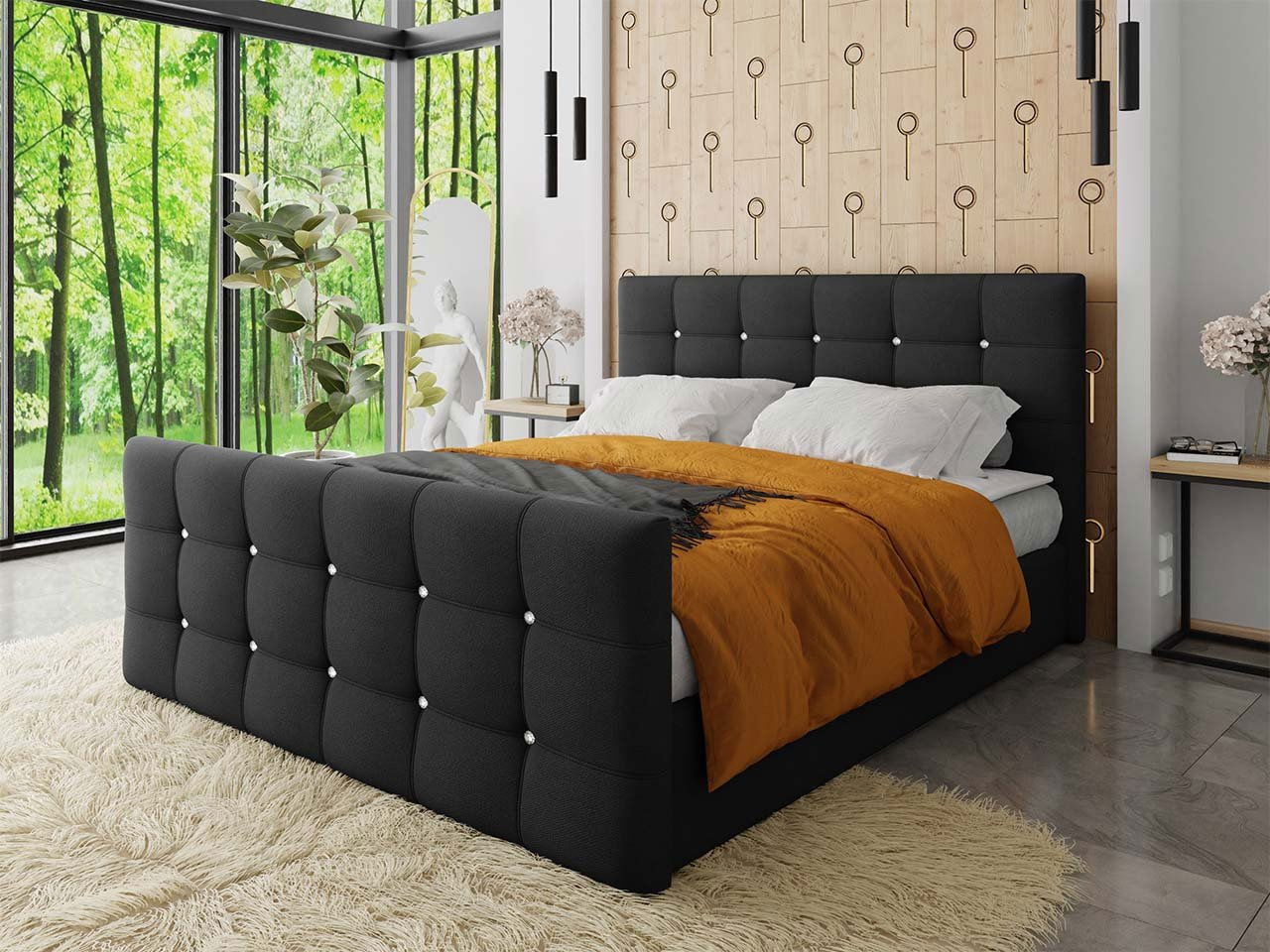 Kontinentální postel je ideální volbou pro ty, kteří hledají pohodlí a styl. Představujeme model Akvore s jednoduchými tvary a elegantním prošíváním, zakončeným jemnými knoflíky připomínajícími krystaly. Tato kontinentální postel s kontejnery spojuje eleganci a moderní funkčnost. Je k dispozici ve třech velikostech: 140, 160 a 180 cm, což vám dává svobodu výběru! Navíc je dostupný ve více barevných provedeních, takže si jistě každý najde to své. Kontinentální postel Akvore má vícevrstvou strukturu, která se skládá z kontejnerů na lůžkoviny, pohodlných bonellových matrací a topperu vybaveného gumičkami proti posunutí. Dostupné rozměry: 140: délka: 216 cm, šířka: 145 cm, výška: 105 cm, plocha na spaní: 140 x 200 cm, rozměry jedné příčky kontejneru (postel má dvě): délka: 195 cm, šířka: 65 cm (vnější délka boxu 70 cm) cm, šířka: 165 cm, výška: 105 cm, plocha na spaní: 160 x 200 cm, rozměry jedné kontejnerové příčky (postel má dvě): délka: 195 cm, šířka: 75 cm (vnější délka boxu 80 cm), výška: 25 cm, 180: délka: 2 cm, plocha na spaní: 180 x 200 cm, rozměry jedné komory (postel má dvě): délka: 195 cm, šířka: 85 cm (vnější délka boxu 90 cm), výška: 25 cm Provedení: rám: 16 mm dřevotříska + 16 mm lamino deska + borovicové 8 + pěna T30, plastové nohy, postel není volně stojící, čelo postele prošívané krystaly, má dva kontejnery na podestýlku - postel standardně se dvěma kontejnery na podestýlku, na obou stranách postele, zvedání díky pružinovému zdvihu, hlavní matrace: bonellové pružiny lůžka) - H3, v horní části - vrchní část matrace (potah Mandula): středně tvrdý, tloušťka 2,5 cm, prošívaný potah, topper vyrobený z nejkvalitnějších hypoalergenních materiálů: antibakteriální a protiplísňový polyesterový úplet 200 gsm, 20 mm PU elasticitou, nízkou náchylností k deformaci, vysokým komfortem používání, netkaná textilie z polyesterových vláken s gramáží 100 g/m2, 35 gsm fleece vyrobený z vysoce kvalitní netkané textilie, 82 gsm polyesterové mikrovlákno: prodyšné, vysoká absorpce roztočem, topper má 4 odolné upevňovací gumy, které zabraňují pohybu matrace, lem: olemován páskou po obvodu, oboustranné - obě strany jsou užitnou plochou, matraci se doporučuje otočit každé 2-3 měsíce, pratelná na 30˚C Možnost zakoupení produktů: Příruční stolek 4