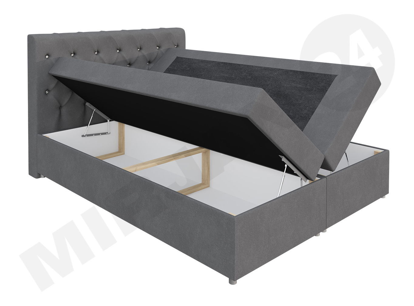 postel se dvěma úložnými prostory po obou stranách postele je standard, zvedání obou částí nad úložným prostorem je pružinové, díky čemuž jde o velmi jednoduché a snadné otevírání.