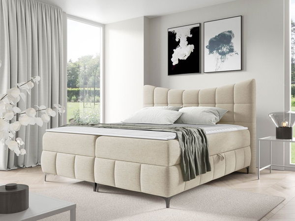 Manželská kontinentální postel je ideální volbou pro ty, kteří hledají pohodlí a styl. Měkké vrstvy kontinentální postele Zelfa vás zahalí do pohodlí a zajistí regenerační spánek každou noc. Pečlivé prošívání v kombinaci s dokonale sladěnou potahovou látkou zdůrazňují nejvyšší kvalitu zpracování. Dvě prostorné lůžkové přihrádky důmyslně ukryté v roštu poskytují prostor pro uložení různých předmětů. I kufr či sezónní oblečení si zde najde místo. Ložnicová postel Zelfa s nepravidelně tvarovaným čelem poskytuje pohodlnou oporu a dodává ložnici moderní styl. Dostupné rozměry: 120: délka: 210 cm, šířka: 124 cm, výška: 120 cm, plocha na spaní: 120 x 200 cm, rozměry jedné komory úložného prostoru (postel má dva): délka: 197 cm, šířka: 57 cm, výška 26 cm, 140: 120 cm, plocha na spaní: 140 x 200 cm, rozměry jedné komory úložného prostoru (postel má dva): délka: 197 cm, šířka: 67 cm, výška 26 cm, 160: délka: 210 cm, šířka: 164 cm, výška: 120 cm, plocha na spaní úložného prostoru (postel má dva): délka: 197 cm, šířka: 77 cm, výška 26 cm, 180: délka: 210 cm, šířka: 184 cm, výška: 120 cm, plocha na spaní: 180 x 200 cm, rozměry jedné komory úložného prostoru (postel má 26 cm, 200: délka: 210 cm, šířka: 204 cm, výška: 120 cm, plocha na spaní: 200 x 200 cm, rozměry jedné komory úložného prostoru (postel má dva): délka: 197 cm, šířka: 97 cm, výška 26 cm Provedení: rám: 1 16 mm silná nábytková deska + borové dřevo + 3 cm silná pěna T25 + nadýchaná netkaná textilie, má dva úložné prostory - postel standardně se dvěma kontejnery na podestýlku, na obou stranách postele, zvedání obou částí díky pružinám, díky čemuž je obsluha velmi cm tl. gsm, PU pěna: vyznačuje se vysokým stupněm hustoty, přiměřenou tvrdostí a elasticitou, nízkou náchylností k deformaci, vysokým komfortem používání, vysoce nadýchaná netkaná textilie 100 gsm vyrobena z polyesterového vlákna, 35 gsm vložka vyrobena z vysoce kvalitní ne8 vysoká absorpce vlhkosti, antialergické, poskytuje bariéru proti prachu a roztočům, topper má 4 odolné upevňovací gumy, které zabraňují pohybu matrace, lem: olemován páskou po obvodu, oboustranné - obě strany tvoří užitnou plochu, Matraci se doporučuje otočit každé 2-3 měsíce, prací postel není volně stojící (záda jsou pokryta fibertexem) Záruka: 24 měsíců