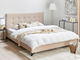Tato minimalistická postel je inspirována skandinávským designem a spojuje jednoduchost s elegancí. Rám i čelo postele jsou čalouněny tkaninou odolnou vůči skvrnám, aby byla zajištěna dlouhá trvanlivost nábytku. Prošívání s knoflíky dodává posteli sofistikovaný vzhled a pevný rám a nohy z kaučukového dřeva zaručují stabilitu a pohodlí.