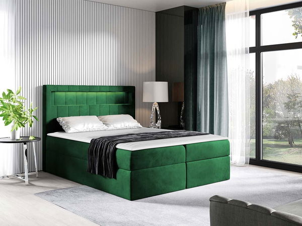 Manželská postel 180 cm Artie (tmavě zelená) (s roštem, matrací a úl. prostorem)