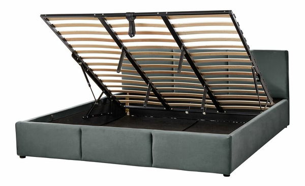 Dodejte své ložnici nádech luxusu a pohodlí díky této posteli s úložným prostorem. Stylové čelo je čalouněno sametovou látkou, která je jemná na dotek, zatímco zbytek rámu postele má jednoduchou a elegantní povrchovou úpravu. Postel má také úložný prostor ukrytý pod lamelovým roštem, který je ideálním místem pro uložení ložního prádla, přikrývek, polštářů či jiných předmětů. Doplňte ji vhodnou matrací a dopřejte si kvalitní odpočinek.