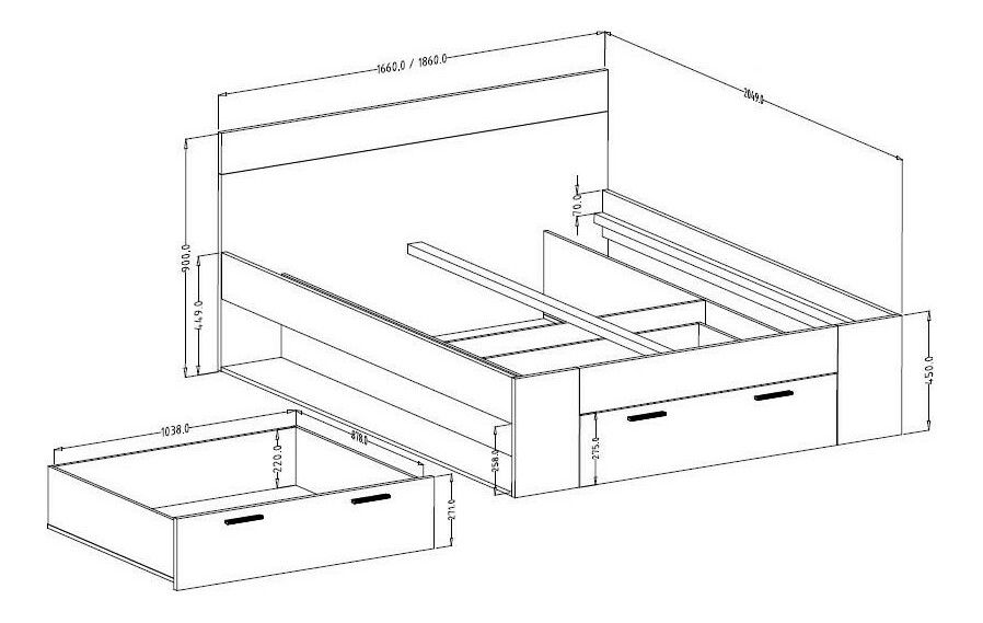 - Manželská postel 180 cm Benson MW92 (dub mauvella + černá)