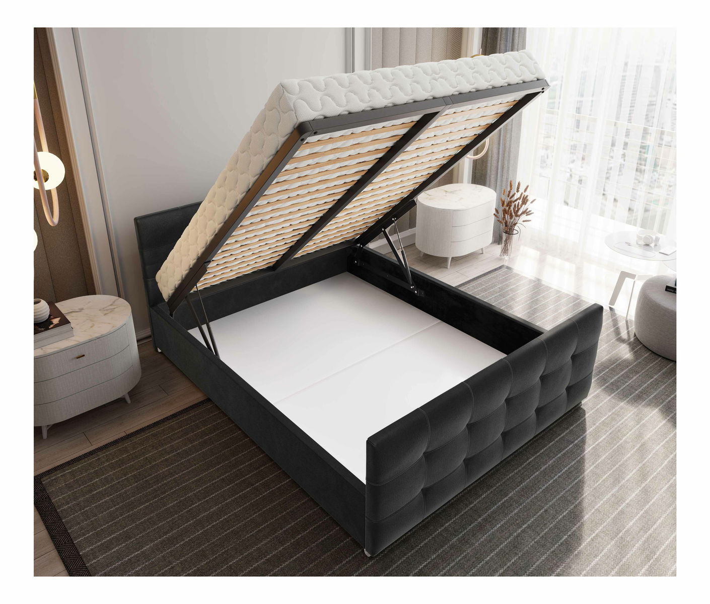 Rošt je součástí postele.