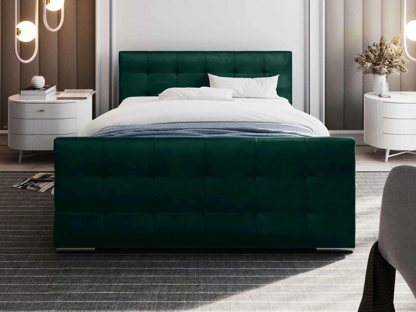 Manželská postel 180 cm Billie (tmavě zelená) (s roštem a úložným prostorem)