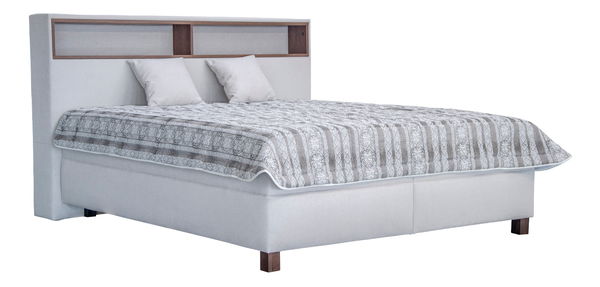 Manželská postel Orson svým moderním designem doslova vyrazí dech. Decentní barva v odstínu bílý krém v kombinaci s dřevěnými poličkami v barvě ořechu a zabudovaným LED podsvícením, dodá Vaší ložnici příjemnou atmosféru. Je čalouněná látkou, což je v dnešní době nejpoužívanější materiál. O pohodlí při sledování TV nebo čtení oblíbené knihy se postará čalouněné čelo s přídavnými podpěrnými polštáři i rošt s mechanickým polohováním hlavy a nohou. Postel Orson nezapomíná ani na úložný prostor, který je šikovně schovaný pod lamelovým roštem. Rošt je s látkovým madlem, pomocí kterého ho vyklopíte nahoru, a tak se dostanete do úložného prostoru. Plocha na spaní má rozměry 180 x 200 cm.