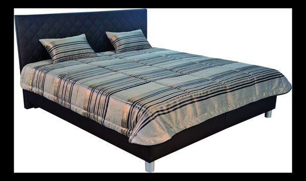Komfortní manželská postel (dvojlůžko) s volně vloženými matracemi Nelly, kvalitní 28 lamelový rošt s polohováním hlava + nohy. Úložný prostor přístupný od nohou. Denní deka a polštáře v ceně postele. Doporučená nosnost do 110 kg. Výška ložné plochy cca 53 cm.
