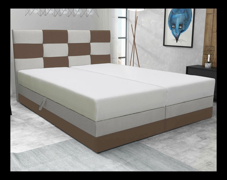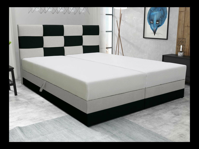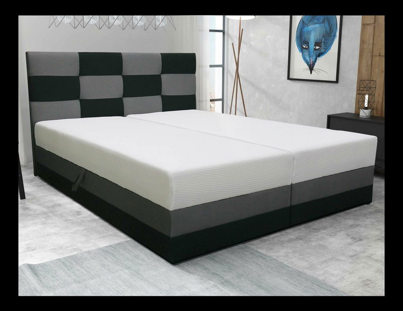 Manželská postel 180 cm Boxspring Marion Comfort (tmavě šedá + světle šedá) (s roštem a matrací)