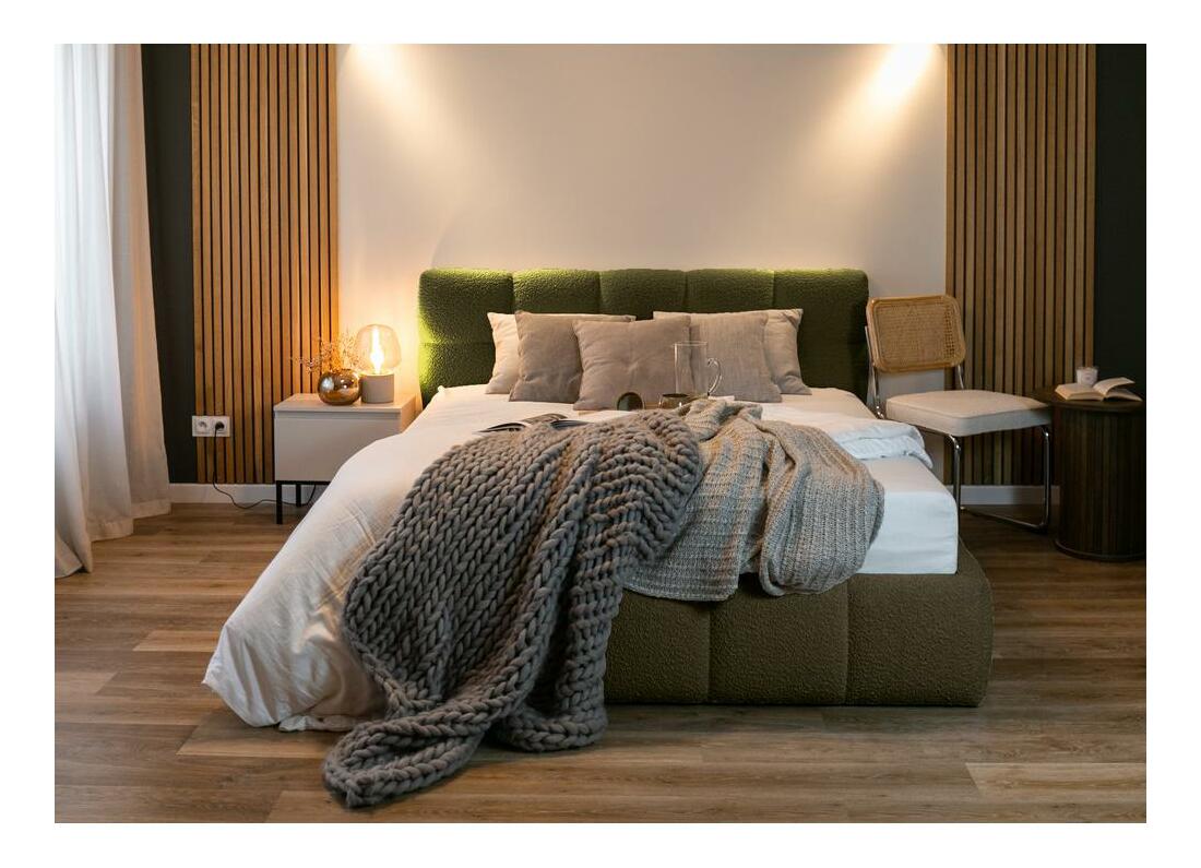 ZobrazitHledáte dokonalou postel, která splní vaše nejvyšší očekávání z hlediska pohodlí, stylu a funkčnosti? Představujeme vám čalouněnou postel – kus nábytku, který bude plně vyhvat vašim potřebám Čalouněná postel je dokonalým spojením funkčnosti a moderního designu, který dodá vaší ložnici eleganci a styl! Tato postel, navržená s ohledem na pohodlí a estetiku, jistě upoutá vaši pozornost. Stylové čelo postele je navrženo tak, aby dokonale ladilo se zaoblenými hranatými tvary podnože. Tato ucelená kompozice dodává posteli eleganci a harmonii. Oblé tvary celé konstrukce zdůrazňují moderní charakter nábytku, díky čemuž je skutečnou ozdobou interiéru. Kvý rám, na kterém spočívá matrace, poskytuje pevnou oporu a odolnost. Díky tomu můžete klidně spát s vědomím, že postel je stabilní a odolná. Jednou z hlavních vlastností, kterými se postel vyznačuje, jsou plynové pohony. Díky nim má postel flexibilní a hladký systém zvedání matrace, který umožňuje pohodlný a snadný přístup k nádobě na lůžko umístěné pod rámem. Jedná se o ideální řešení pro ty, kteří chtějí maximálně využít prostor ve své ložnici. Další výhodou postele je výběr dvou různých látek v různých barvách. Můžete si vybrat z široké škály barev a textur, které se přizpůsobí vašemu individuálnímu stylu a výzdobě ložnice Vyberte si postel a užijte si pohodlí, eleganci a funkčnost Detaily produktu: čalouněná opěrka hlavy se stylovými zaoblenými čtverci, zadní část opěrky hlavy je čalouněna černou podšívkou, plocha na spaní: 180x200 cm, kvý rám včetně, omezovač posuvu rámu zajišťující bezpečné používání, rám má 34 lamel - husté uspořádání příček výrazně zvyšuje komfort při používání postele, dvoukomorový kontejner na lůžko pokrývající celou plochu na spaní, výška spací plochy: 35 cm, nábytek je čalouněný látkou Legend 05 v olivové barvě, Legend je absolutní legendou ve světě textilu. Jeho jedinečné vlastnosti jej dělají mimořádně žádaným mezi milovníky luxusních povrchových úprav a kvalitních materiálů. Je vyroben z boucle tkaniny, která má charakteristickou strukturu, která připomíná jemné smyčky. Právě tyto smyčky vytvářejí jedinečný vzhled a jemné nuance, které dodávají tkanině jedinečný charakter. Hustá vazba látky Legend zaručuje její výjimečnou trvanlivost a odolnost při každodenním používání. Díky tomu si můžete být jisti, že látka si i při intenzivním používání zachová svůj krásný vzhled po mnoho let. Model je dostupný v šířkách: 140 cm, 160 cm a 180 cm.