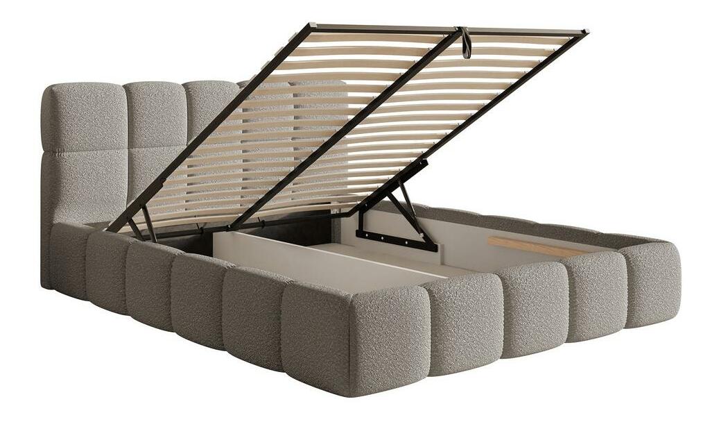 ZobrazitHledáte dokonalou postel, která splní vaše nejvyšší očekávání z hlediska pohodlí, stylu a funkčnosti? Představujeme vám čalouněnou postel – kus nábytku, který bude plně vyhvat vašim potřebám Čalouněná postel je dokonalým spojením funkčnosti a moderního designu, který dodá vaší ložnici eleganci a styl! Tato postel, navržená s ohledem na pohodlí a estetiku, jistě upoutá vaši pozornost. Stylové čelo postele je navrženo tak, aby dokonale ladilo se zaoblenými hranatými tvary podnože. Tato ucelená kompozice dodává posteli eleganci a harmonii. Oblé tvary celé konstrukce zdůrazňují moderní charakter nábytku, díky čemuž je skutečnou ozdobou interiéru. Kvý rám, na kterém spočívá matrace, poskytuje pevnou oporu a odolnost. Díky tomu můžete klidně spát s vědomím, že postel je stabilní a odolná. Jednou z hlavních vlastností, kterými se postel vyznačuje, jsou plynové pohony. Díky nim má postel flexibilní a hladký systém zvedání matrace, který umožňuje pohodlný a snadný přístup k nádobě na lůžko umístěné pod rámem. Jedná se o ideální řešení pro ty, kteří chtějí maximálně využít prostor ve své ložnici. Další výhodou postele je výběr dvou různých látek v různých barvách. Můžete si vybrat z široké škály barev a textur, které se přizpůsobí vašemu individuálnímu stylu a výzdobě ložnice Vyberte si postel a užijte si pohodlí, eleganci a funkčnost Detaily produktu: čalouněná opěrka hlavy se stylovými zaoblenými čtverci, zadní část opěrky hlavy je čalouněna černou podšívkou, plocha na spaní: 180x200 cm, kvý rám včetně, omezovač posuvu rámu zajišťující bezpečné používání, rám má 34 lamel - husté uspořádání příček výrazně zvyšuje komfort při používání postele, dvoukomorový kontejner na lůžko pokrývající celou plochu na spaní, výška spací plochy: 35 cm, nábytek je čalouněný látkou Legend 04 v šedé barvě (teplý odstín), Legend je absolutní legendou ve světě textilu. Jeho jedinečné vlastnosti jej dělají mimořádně žádaným mezi milovníky luxusních povrchových úprav a kvalitních materiálů. Je vyroben z boucle tkaniny, která má charakteristickou strukturu, která připomíná jemné smyčky. Právě tyto smyčky vytvářejí jedinečný vzhled a jemné nuance, které dodávají tkanině jedinečný charakter. Hustá vazba látky Legend zaručuje její výjimečnou trvanlivost a odolnost při každodenním používání. Díky tomu si můžete být jisti, že látka si i při intenzivním používání zachová svůj krásný vzhled po mnoho let. Model je dostupný v šířkách: 140 cm, 160 cm a 180 cm.