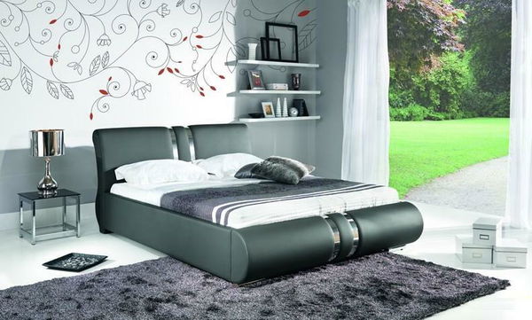 Luxusní manželská postel s moderním designem skvěle oživí prostor Vaší ložnice. Je vyrobena z kvalitní ekokůže. Na čelech má dva ozdobné pásy stříbrné barvy. Plocha lůžka je 180 x 200 cm.