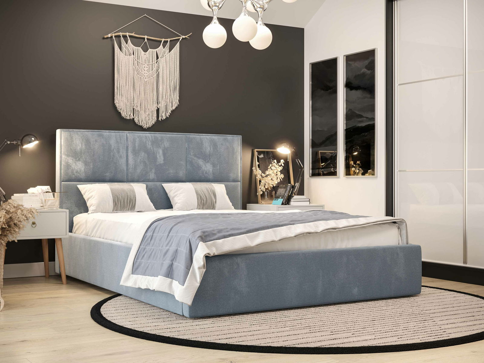 ZobrazitManželská postel ze série Elna o výšce 115 cm a délce 210 cm je kompletně pokryta odolnou tkaninou Monolith 70, která je příjemná na dotek a chrání před vstřebáním tekutin. Postel obsahuje rošt a úložný prostor na ložní prádlo. Konstrukce je vyrobena z kombinace dřevotřísky a dřeva, s maximálním zatížením 240 kg. Matrace není součástí produktu, ale je možné si ji přiobjednat.