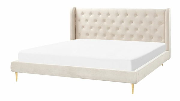 Vneste do své ložnice špetku glamour stylu prostřednictvím této stylové postele. Čalounění z kvalitního sametu je příjemné na dotek, působí elegantně a zároveň je velmi odolné. Béžové čalounění v kombinaci se zlatým kovovýma nohama vytváří poutavou kombinaci. Elegantní design postele podtrhuje vysoké prošívané čelo. Postel se dodává i se sadou roštů, které zajistí správnou polohu těla a postarají se o klidný spánek.