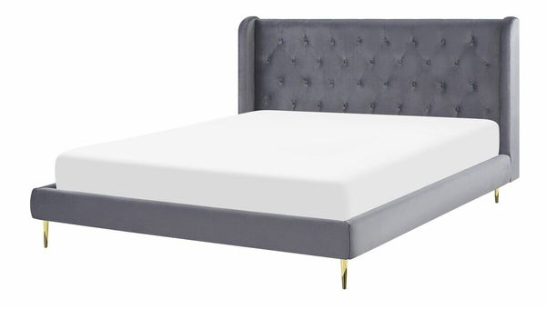 Vneste do své ložnice špetku glamour stylu prostřednictvím této stylové postele. Čalounění z kvalitního sametu je příjemné na dotek, působí elegantně a zároveň je velmi odolné. Šedé čalounění v kombinaci se zlatým kovovýma nohama vytváří poutavou kombinaci. Elegantní design postele podtrhuje vysoké prošívané čelo. Postel se dodává i se sadou roštů, které zajistí správnou polohu těla a postarají se o klidný spánek.