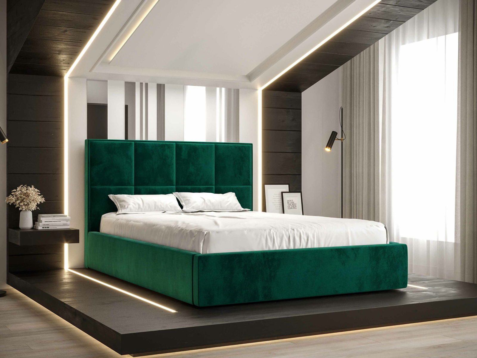 Manželská postel 180 cm Gino (tmavě zelená) (s roštem a úložným prostorem)