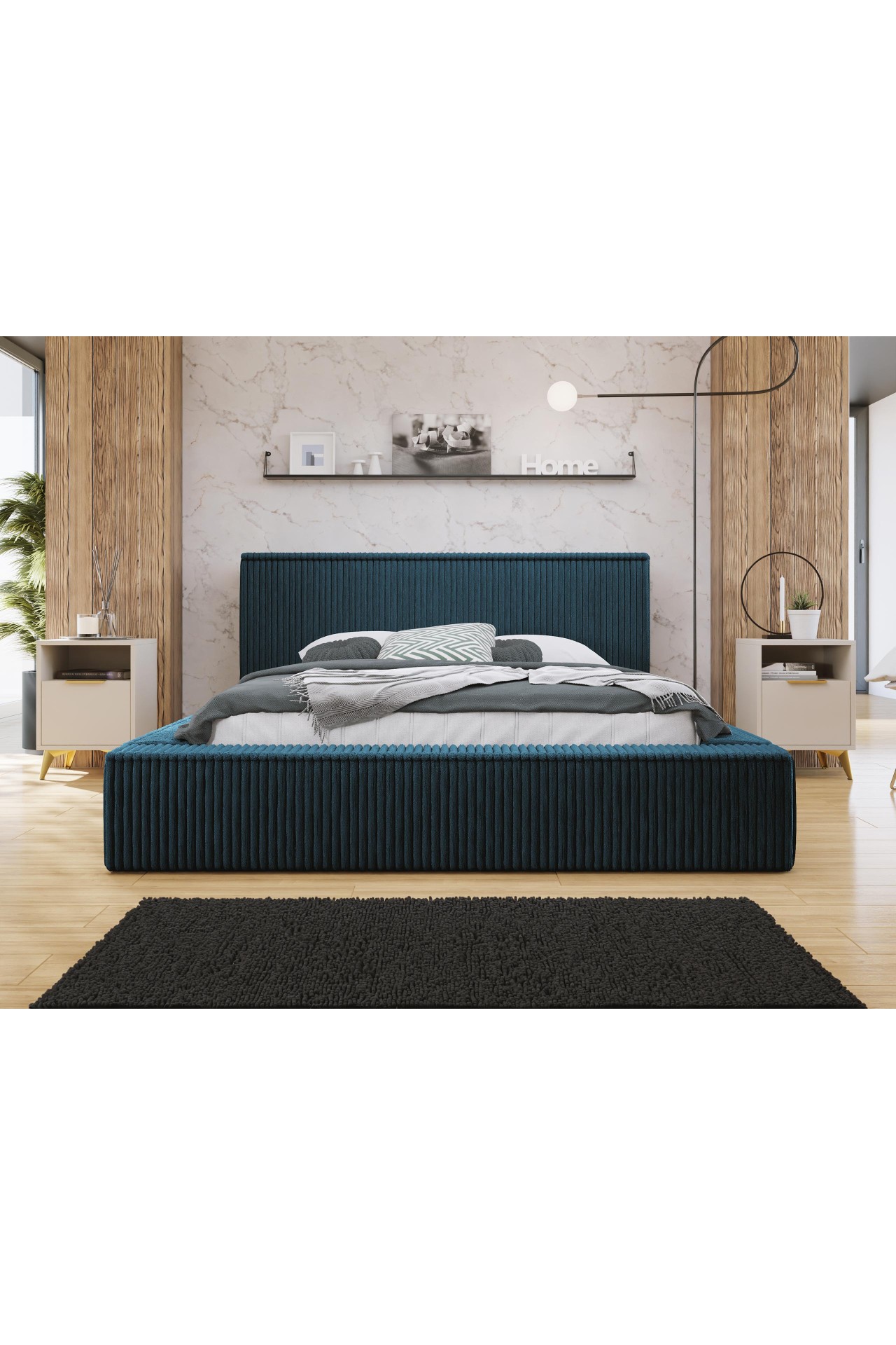 Manželská postel 180 cm Gretty S (tmavě modrá) (s roštem) (s úl. prostorem)