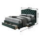 Manželská postel Kelpea o rozměru 180x200 cm je dokonalým doplňkem vaší ložnice. Tato postel je zahalena v krásné smaragdové Velvet látce, která dodává místnosti exkluzivní vzhled. Postel je dodávána s lamelovým roštem a disponuje úložným prostorem v podobě tří šuplíků, které jsou dostupné z obou stran postele. Vysoké prošívané čelo dokonale podepře vaše záda při čtení a odpočinku. Postel je vyrobena z kvalitního materiálu, má nosnost na jedno lůžko až 110 kg a je dodávána bez matrace. Tato luxusní postel Kelpea je tím, co potřebujete pro dokonalý spánek a relax. Doporučujeme ji umístit do dostatečně velkého prostoru.