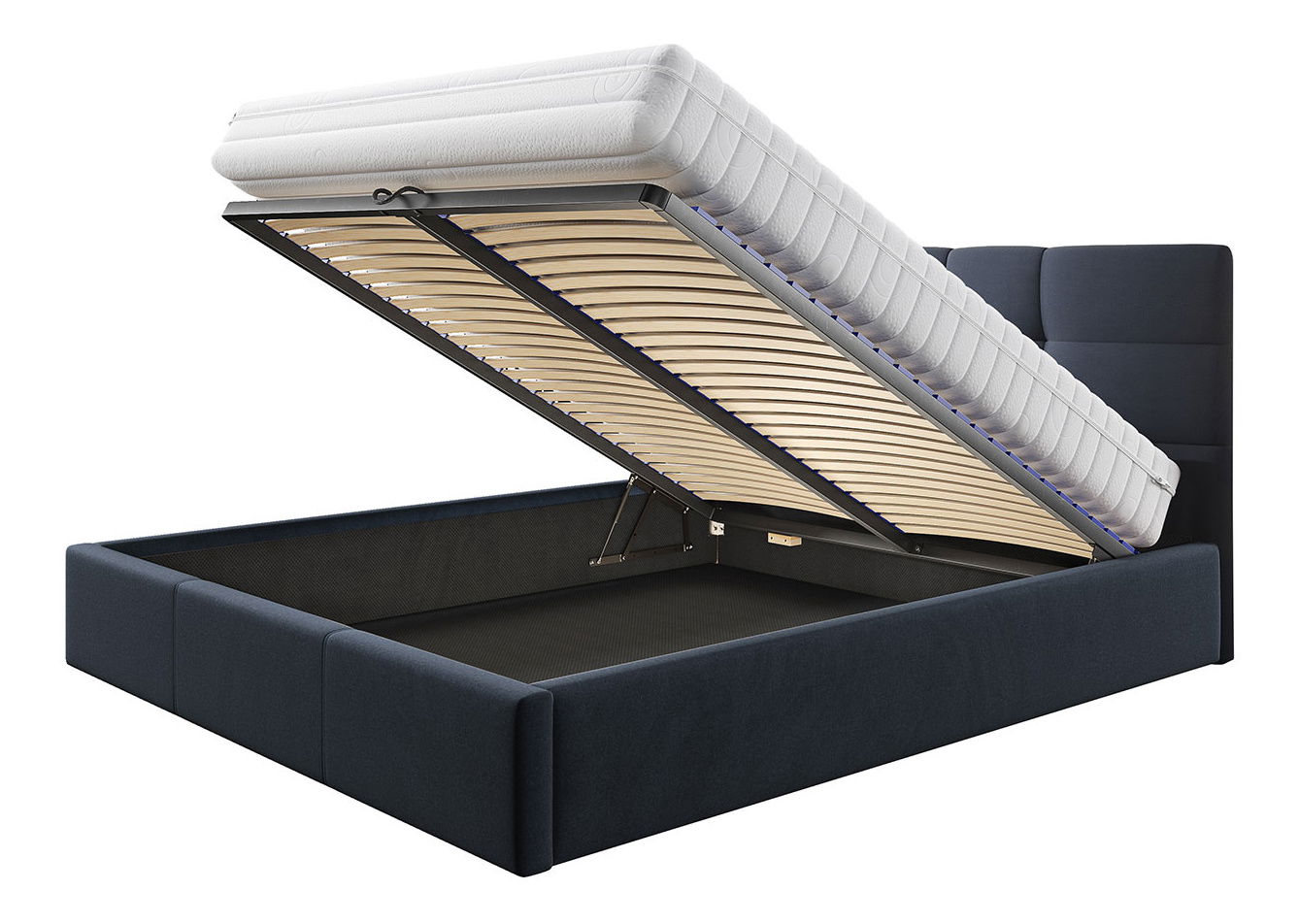 má úložný prostor (je vybavena plynovou pružinou, která usnadňuje otevření postele)