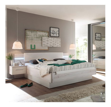 - Kentucky (s LED osvětlením a 2 ks. noč. stolky) (dub bílý + bílá)