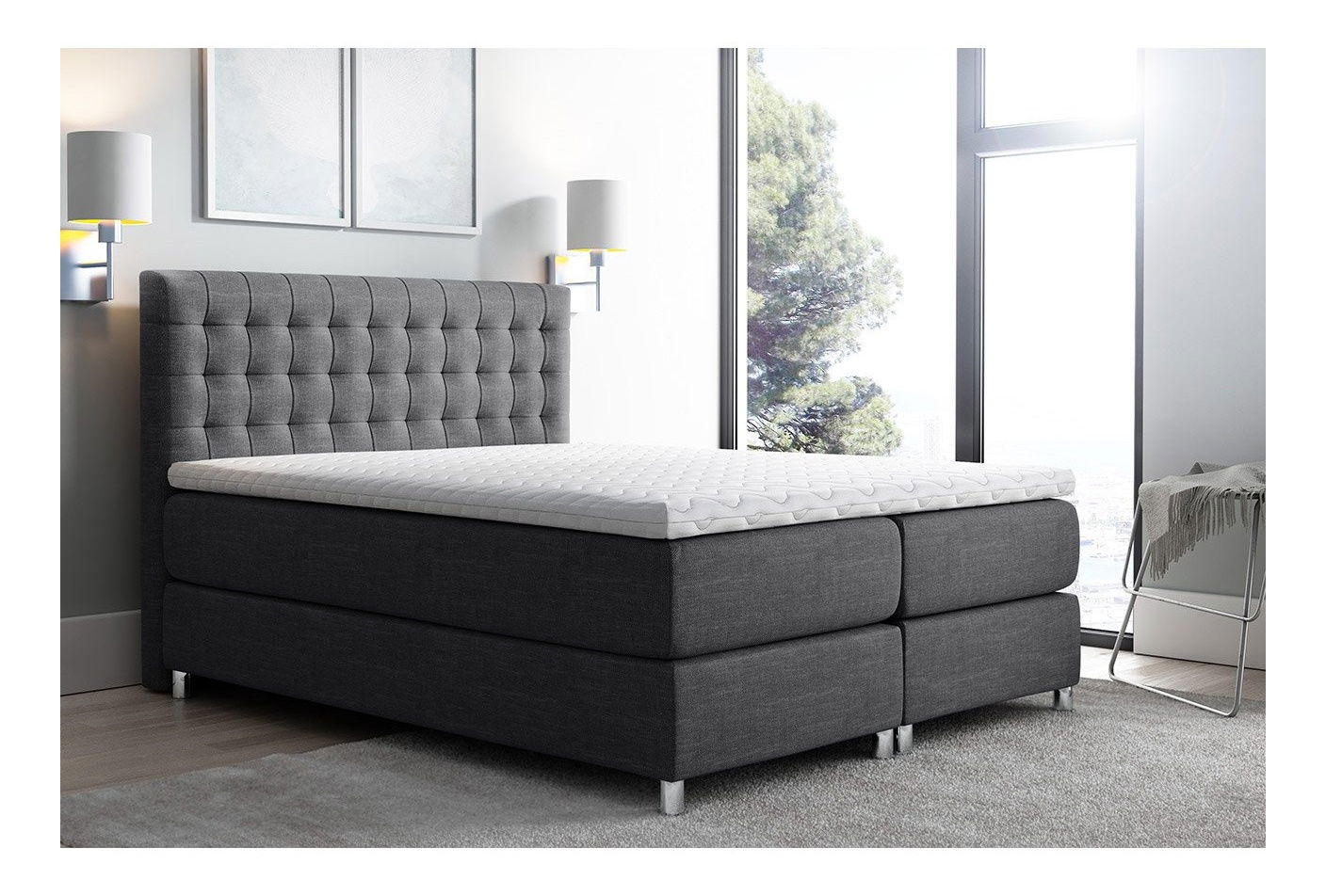 Kontinentální postel je ideální volbou pro ty, kteří hledají pohodlí a styl. Korti je kontinentální postel vyrobená ze tří vrstev: - masivní rám s chromovanýma nohama - hlavní matrace vyrobená z kapesních pružin a vysoce elastické pěny, - topper, tj. tenká vrchní matrace, která zvyšuje pohodlí. Kontinentální postel Korti má také vysoké čalouněné opěrky hlavy, které jsou prošívané. Čelo vyrobená tímto způsobem dodává posteli jedinečný charakter, umožňuje pohodlné čtení knih před spaním a chrání stěnu za postelí před znečištěním. Korti je k dispozici ve třech velikostech, ze kterých si můžete vybrat, takže postel si můžete přizpůsobit rozměrům své ložnice. Dostupné rozměry: 140 - délka: 215 cm, šířka: 140 cm, výška: 120 cm, plocha na spaní: 140 x 200 cm, 160 - délka: 215 cm, šířka: 160 cm, výška: 120 cm, délka na spaní: 160 x 20 180 cm, výška: 120 cm, plocha na spaní: 180 x 200 cm Provedení: postel není volně stojící, záda jsou čalouněna silnější vláknitou tkaninou - fibertex, provedení kontinentálního lůžka: spodní část - pevný rám s chromovanými nohama, přepravka ložní prádlo, střed - hlavní matrace, vstup: pružiny Pocket (matrace typu Pocket má 272 válcových pružin na 1 m2, umožňuje uživateli užívat si dobrou podporu těla - kosterní systém je dobře podepřený a zachovávají se přirozené křivky těla), vysoce flexibilní pěna T30, horní část - Topper Man2 potah, topper vyrobený z nejkvalitnějších hypoalergenních materiálů: antibakteriální a protiplísňový polyesterový úplet 200 g/m2, 20 mm PU pěna: vyznačuje se vysokým stupněm hustoty, přiměřenou tvrdostí a pružností, nízkou deformovatelností, vysokým komfortem používání Netkaná textilie z polyester m2, Rouno o hmotnosti 35 g/m2 vyrobené z vysoce kvalitní netkané textilie, 82 g/m2 polyesterového mikrovlákna: prodyšné, s vysokou absorpcí vlhkosti, antialergické, bariéra proti prachu a roztočům, topper má 4 odolné upevňovací gumy, které zabraňují pohybu matraci otáčet každé 2-3 měsíce, lze prát na 30°C vstup: pěna - vysoce elastická pěna (vyznačující se mimořádnou pružností, pružností a pružností, jakož i propustností vzduchu), prošívaný potah - zip ve tvaru C, výška svršku cca 5 cm, jiné: opěrka hlavy zakončená Umaru v barevném provedení jako postel Záruka: 24 měsíců