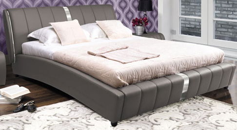 Luxusní manželská postel s moderním designem skvěle oživí prostor Vaší ložnice. Je vyrobena z šedé ekokůže. Na čelech má ozdobný pás stříbrné barvy. Plocha lůžka je 180 x 200 cm.