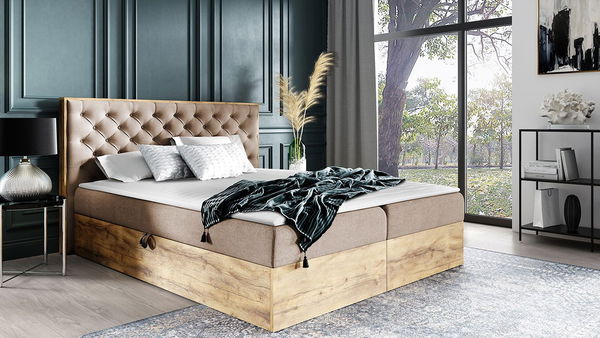 Kontinentální postel je ideální volbou pro ty, kteří hledají pohodlí a styl. Elegantní kontinentální postel se 2 úložnými prostory Maradis 3 je základem pohodlného odpočinku. Pohodlí během spánku zajišťuje několik vrstev matrace včetně topperu. Ten chrání hlavní matraci před poškozením, čímž prodlužuje její životnost a spolehlivost. Elegantní vzhled postele tvoří pečlivě vybrané komponenty. Základnu ve vzorech dřeva doplňují čalouněné vložky. Čalounění matrace a ozdobně prošívaný podhlavník jsou prvky, které podtrhují výjimečný vzhled celého nábytku. Ze široké škály barev čalounění si můžete vybrat tu, která se nejlépe hodí do interiéru vaší ložnice. Další výhodou postele Madaris 3 jsou její 2 úložné prostory. Prostory, které jsou k dispozici pod matrací, poskytují vynikající úložný prostor pro polštáře, přikrývku a náhradní deky pro chladnější večery. Dostupné rozměry: 120: délka: 211 cm, šířka: 130 cm, výška: 105 cm, plocha na spaní: 120 x 200 cm, rozměry jednoho úložného prostoru (postel má dva): délka: 197 cm, šířka: 57 cm, výška: 25 cm, 140: 105 cm, plocha na spaní: 140 x 200 cm, rozměry jednoho úložného prostoru (postel má dva): délka: 197 cm, šířka: 67 cm, výška: 25 cm, 160: délka: 211 cm, šířka: 170 cm, výška: 105 cm, plocha na spaní: (postel má dva): délka: 197 cm, šířka: 77 cm, výška: 25 cm, 180: délka: 211 cm, šířka: 190 cm, výška: 105 cm, plocha na spaní: 180 x 200 cm, rozměry jednoho úložného prostoru (postel má dva): délka: 1 200: délka: 211 cm, šířka: 210 cm, výška: 105 cm, plocha na spaní: 200 x 200 cm, rozměry jednoho úložného prostoru (postel má dva): délka: 197 cm, šířka: 97 cm, výška: 25 cm Provedení: Úložný prostor: 16 mm mm surová deska + vysoce elastická pěna T25, má dva kontejnery na lůžkoviny - postel má standardně dva kontejnery na lůžkoviny na obou stranách postele, přičemž obě části se zvedají díky pružinám, což velmi usnadňuje manipulaci, hlavní matrace: pružiny typu bonell + vysokoelastická pěna T25, stupeň středně pevná, na samém vrchu - vrchní matrace (Mandula topper): středně pevná, tloušťka přibližně 2,5 cm, prošívaný potah, topper vyrobený z hypoalergenních materiálů nejvyšší kvality: antibakteriální a protiplísňová polyesterová pletenina s gramáží 200 g/m² přiměřenou tvrdostí a pružností, nízkou náchylností k deformaci, vysokým komfortem používání, vysoce nadýchané rouno 100 g/m² z polyesterového vlákna, fleec s gramáží 35 g/m² vyrobený z vysoce kvalitní netkané textilie, polyesterové mikrovlákno s gramáží 82 g/m²: bariéra proti prachu a roztočům, topper má 4 pevné upevňovací gumy, které zabraňují pohybu matrace, lem: po obvodu olemovaný páskou, oboustranné - obě strany poskytují použitelný povrch, doporučuje se matraci otáčet každé 2-3 měsíce, lze prát při 30˚C nožičky: plastové, postel není volně