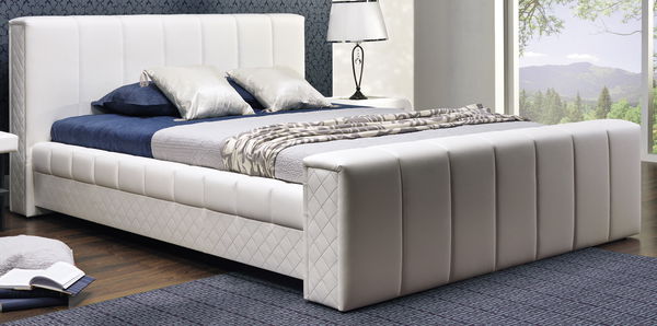 Moderní manželská postel svým designem udělá z Vaší ložnice luxusní prostor. Je vyrobena z kvalitní ekokůže. Po stranách je vzorovane a na čelech pruhované prošitá. Plocha lůžka je 180 x 200 cm. V ceně postele je zahrnut i rošt s úložným prostorem. Matrace a noční stolek si můžete vybrat a přiobjednat z našeho internetového obchodu.