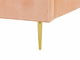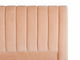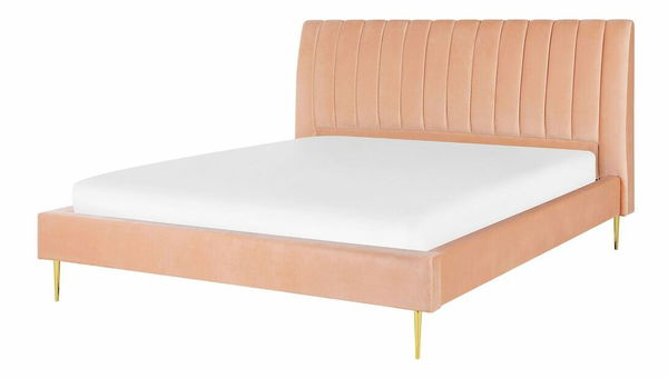 Elegantní postel v moderním stylu s vysokým a hrubě vyztuženým opěradlem. Klasický obdélníkový tvar postele doplňuje prošívané čelo, které posteli dodává moderní vzhled. Nohy jsou perfektně vyvážené a neodvádějí pozornost od elegantního designu, ale zajišťují silnou, pevnou a odolnou konstrukci. Celá postel je čalouněna sametem v broskvovém odstínu růžové, který jí dodává sofistikovaný vzhled.