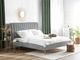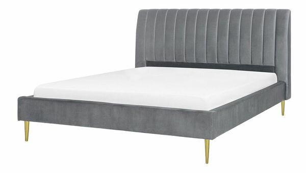 Elegantní postel v moderním stylu s vysokým a hrubě vyztuženým opěradlem. Klasický obdélníkový tvar postele doplňuje prošívané čelo, které posteli dodává moderní vzhled. Nohy jsou perfektně vyvážené a neodvádějí pozornost od elegantního designu, ale zajišťují silnou, pevnou a odolnou konstrukci. Celá postel je čalouněna šedým sametem, který jí dodává sofistikovaný vzhled.