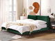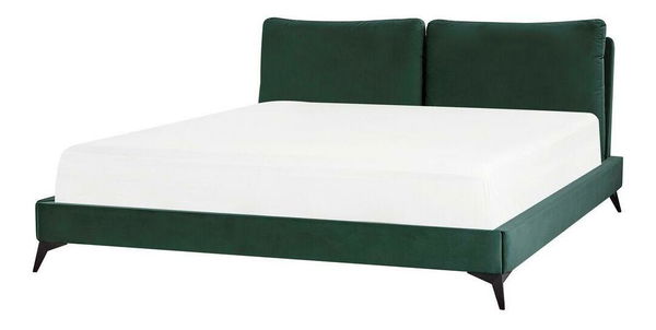 Vylepšete vzhled své ložnice touto elegantní postelí. Díky sametovému čalounění s jemným povrchem se hodí k mnoha stylům interiérového zařízení, nejlépe však bude ladit s interiéry ve skandinávském a vintage stylu. Hrubé čalouněné polštáře připevněné k čelu postele pomocí zipu zvyšují komfort při používání. Rám postele stojí na černých nohách, které krásně kontrastují s barvou čalounění.