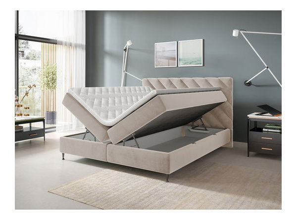 dva kontejnery na lůžkoviny (na každé straně postele), plynové zvedáky pro snadné otevírání,