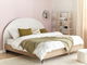 Hledáte-li stylovou a pohodlnou postel, tento kousek je pro vás ideální volbou. Díky odolnému rámu z MDF, černým kovovým nohám a pevnému dřevěnému roštu bude vypadat skvěle dlouhá léta. Čalouněné půlkruhové čelo postele umocňuje její elegantní a zároveň útulný design, který se hodí do ložnic laděných v moderním i tradičním stylu.