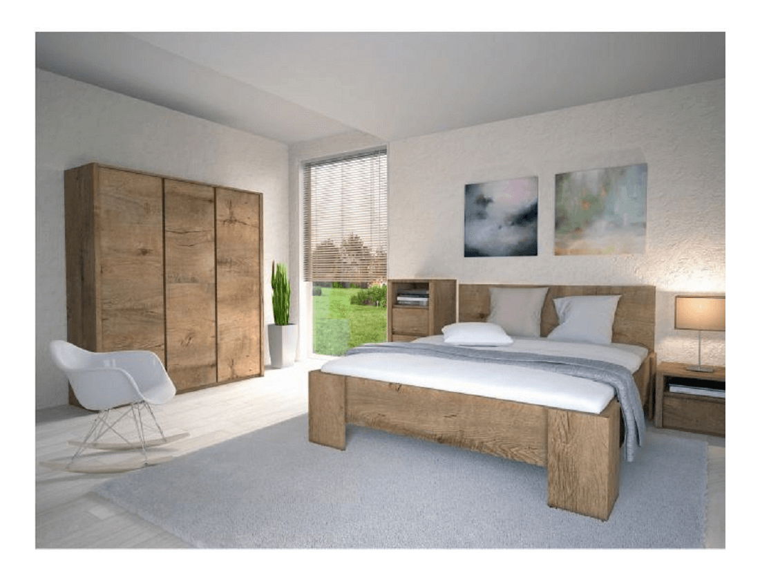 Manželská postel Modestus o rozměrech 180 x 200 cm je vyrobena z DTD laminovaného materiálu o tloušťce 22 mm a doplněna o ABS hrany. Výška po roštu je 35 cm. Postel je dodávána s laťovým roštem a nosností až 110 kg. Barevné provedení dub lefkas tmavý krásně vynikne v ložnici a její tradiční vzhled ocení milovníci jednoduchého a praktického nábytku. Tato postel je součástí modelové řady Montana, která je univerzální a moderní. Postel je dodávána v demontu a bez matrace. Doporučuje se zakoupit matraci s minimální výškou 13 cm. Dopřejte si kvalitní a trvanlivý nábytek pro vaši ložnici a vyzkoušejte Manželskou postel Modestus.