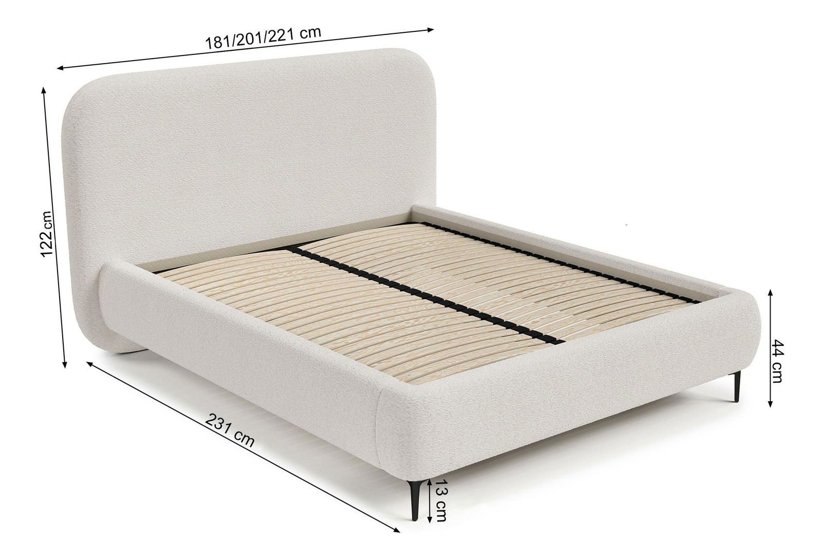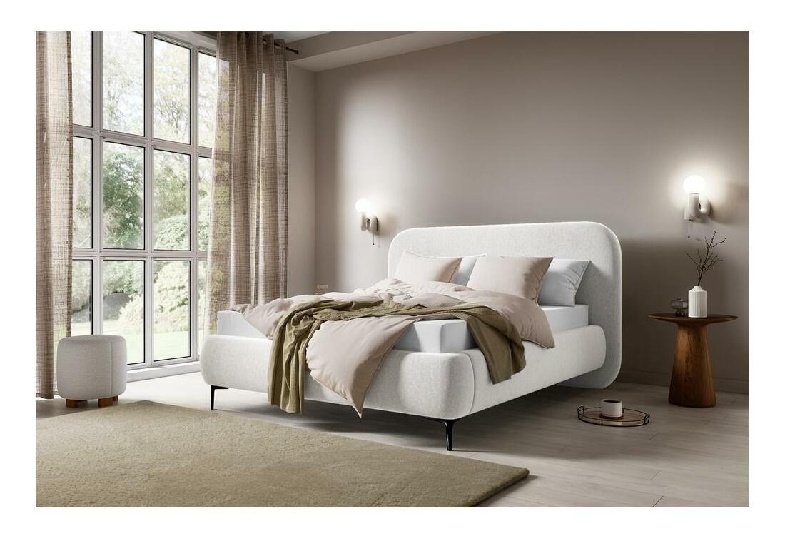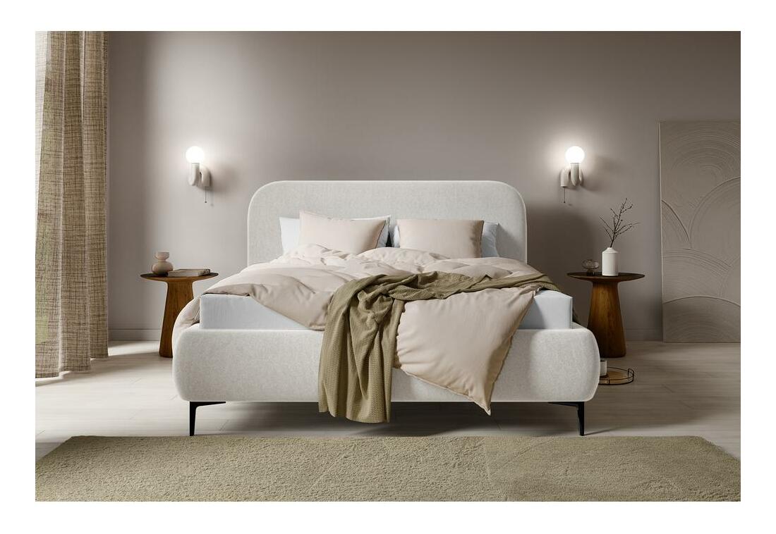 Oceňujete originální formy v interiérech? Vyberte si čalouněnou postel poutá pozornost originálním, zaobleným tvarem čela. Čelo postele, stejně jako celá postel, je čalouněno jemnou sametou látkou, takže kromě stylového vzhledu je jako stvořené pro večerní čtení či nedělní snídani do postele a poskytuje pohodlnou oporu vašim zádům. Základem celku jsou vysoké dřevěné nohy, poskytující stabilní oporu konstrukci Detaily produktu: plocha na spaní: 180/200 cm barva nohou: černý dřevěný rám dřevěné nohy se vyznačují vysokou odolností a stabilitou, postel potažena látkou Castel 03 in. světle béžováCastel je měkká, hladká tkanina vyznačující se vysokou odolností proti tření, oděru a žmolkování, díky čemuž je ideální pro každodenní nábytek. Další výhodou je Easy Clean Technology – materiál se snadno čistí, což umožňuje snadné odstranění nečistot s trochou vody a měkkým hadříkem.
