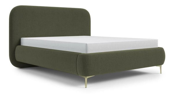 Oceňujete originální formy v interiérech? Vyberte si čalouněnou postel poutá pozornost originálním, zaobleným tvarem čela. Čelo postele, stejně jako celá postel, je čalouněno jemnou sametou látkou, takže kromě stylového vzhledu je jako stvořené pro večerní čtení či nedělní snídani do postele a poskytuje pohodlnou oporu vašim zádům. Základem celku jsou vysoké dřevěné nohy, poskytující stabilní oporu konstrukci Detaily produktu: plocha na spaní: 180/200 cm barva nohou: zlatý dřevěný rám dřevěné nohy se vyznačují vysokou odolností a stabilitou, postel potažena látkou Castel 39 in. olivová barvaCastel je měkká, hladká tkanina vyznačující se vysokou odolností proti tření, oděru a žmolkování, díky čemuž je ideální pro každodenní nábytek. Další výhodou je Easy Clean Technology – materiál se snadno čistí, což umožňuje snadné odstranění nečistot s trochou vody a měkkým hadříkem.